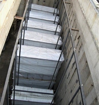 FSMBR 16 Single Deck Flat Sheet Membrane 150 Cassettes (Model No. FSMBR 16-150), FMBR PVDF Series is a high-flux Flat Sheet MBR membrane delivering excellent permeability, fouling resistance, stability, and elimination effectiveness. Structured with PVDF (permanently hydrophilic polyvinyl difluoride) has the advantage of dry storage. FMBR PVDF Series membranes can be used for a wide variety of treatment applications such as industrial and domestic wastewater.